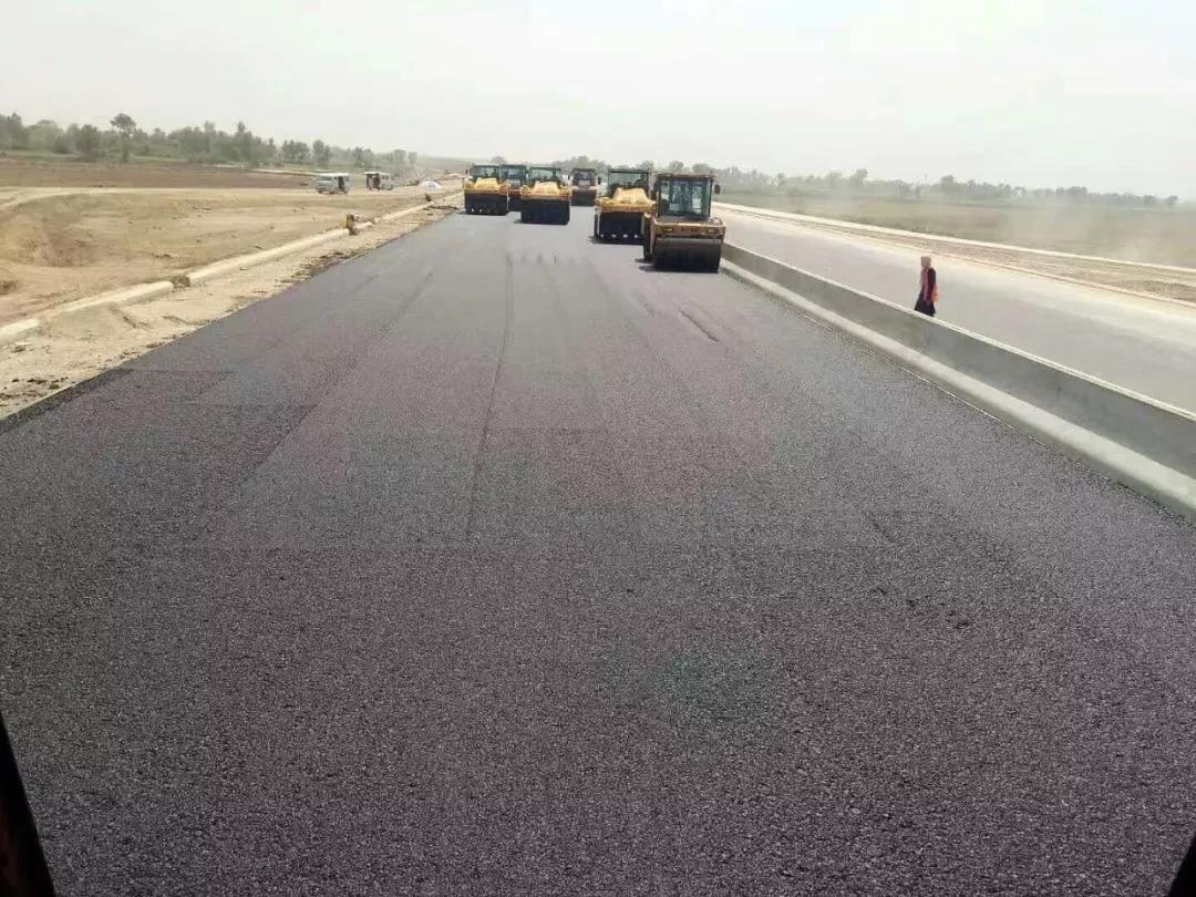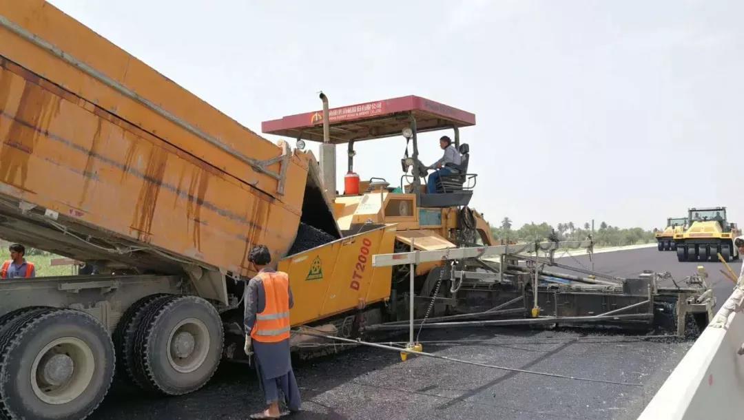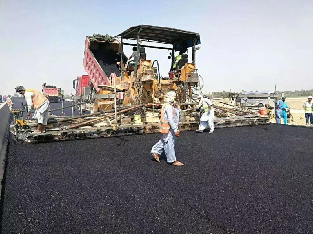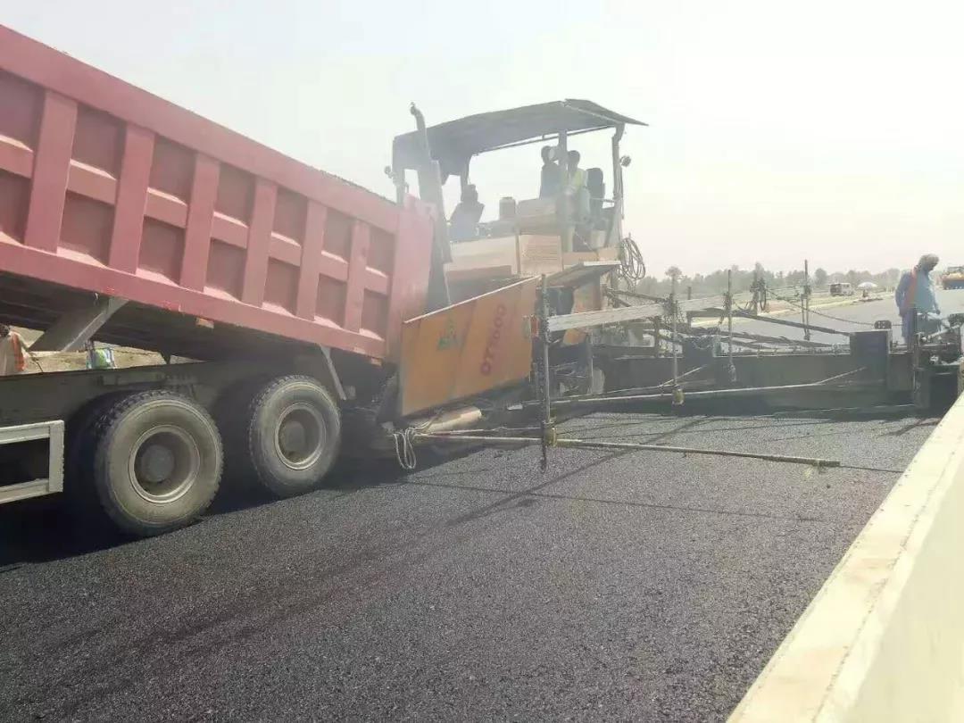 云南陽光道橋購買的中大DT1600抗離析攤鋪機,十年無大修!在巴基斯坦PKM路面二分部瀝清中面層攤鋪順暢進行中!