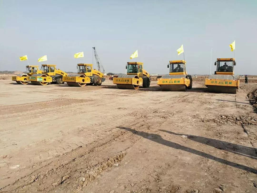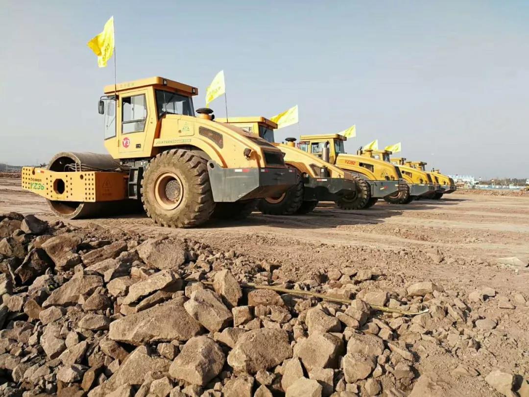 這是四川天府機場基礎壓實施工現場